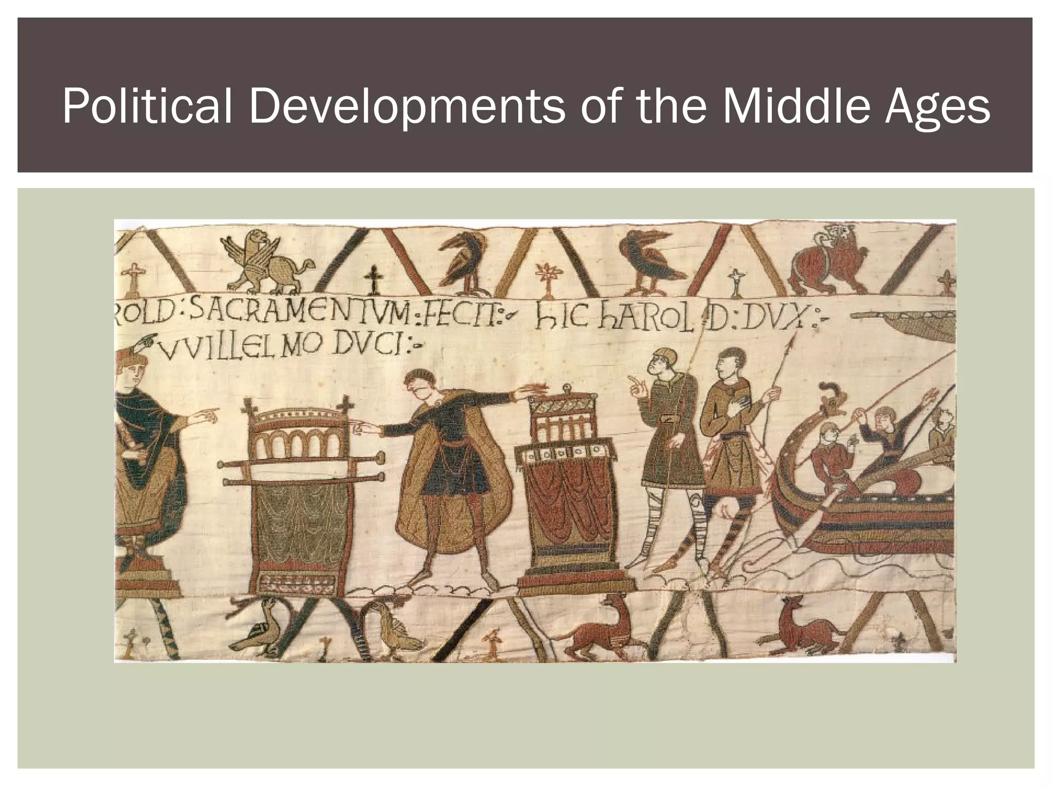 3. The 13th century saw the development of Parliament in England as kings needed money and granted power to the nobility and commoners to tax and spend, establishing the foundations of representative democracy.