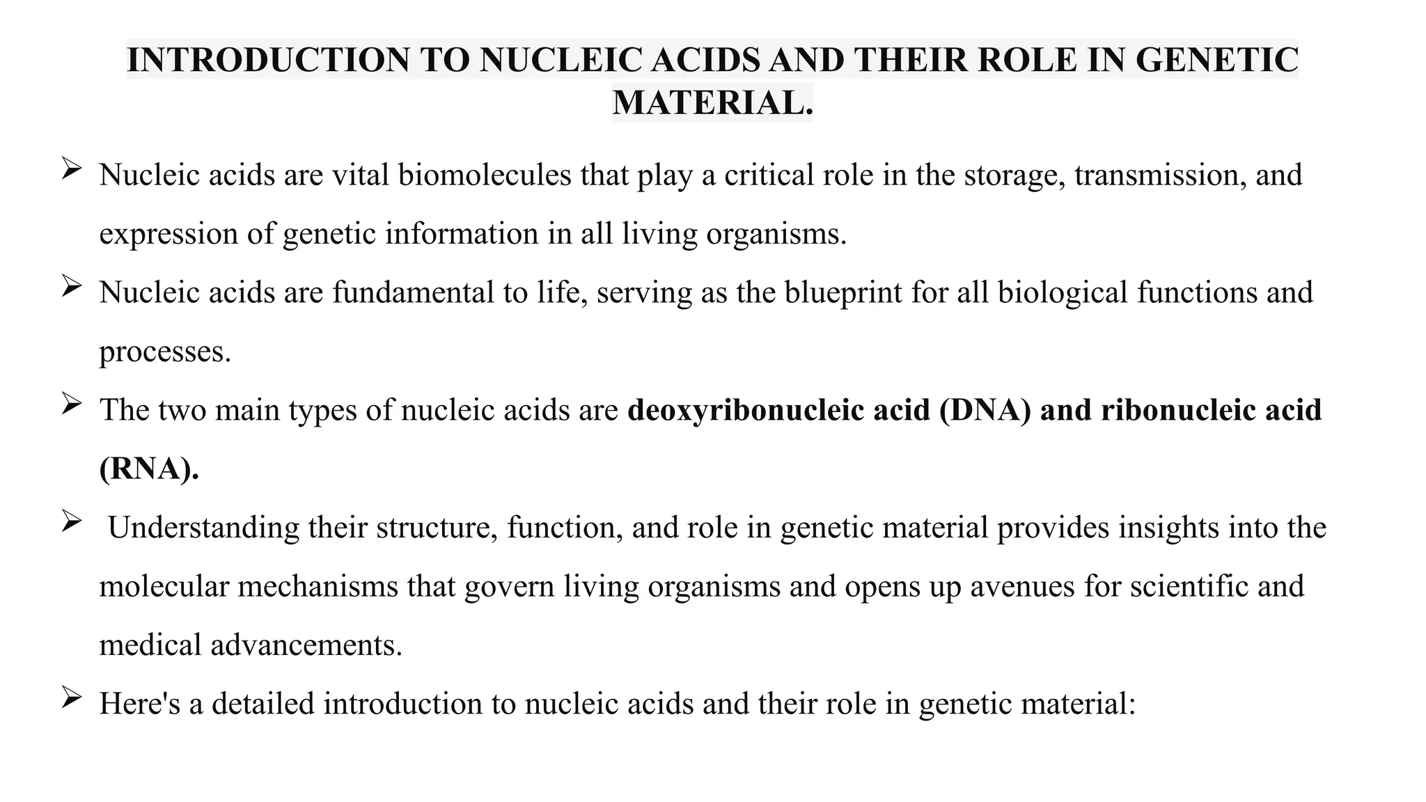 Here's a detailed introduction to nucleic acids and their role in genetic material: