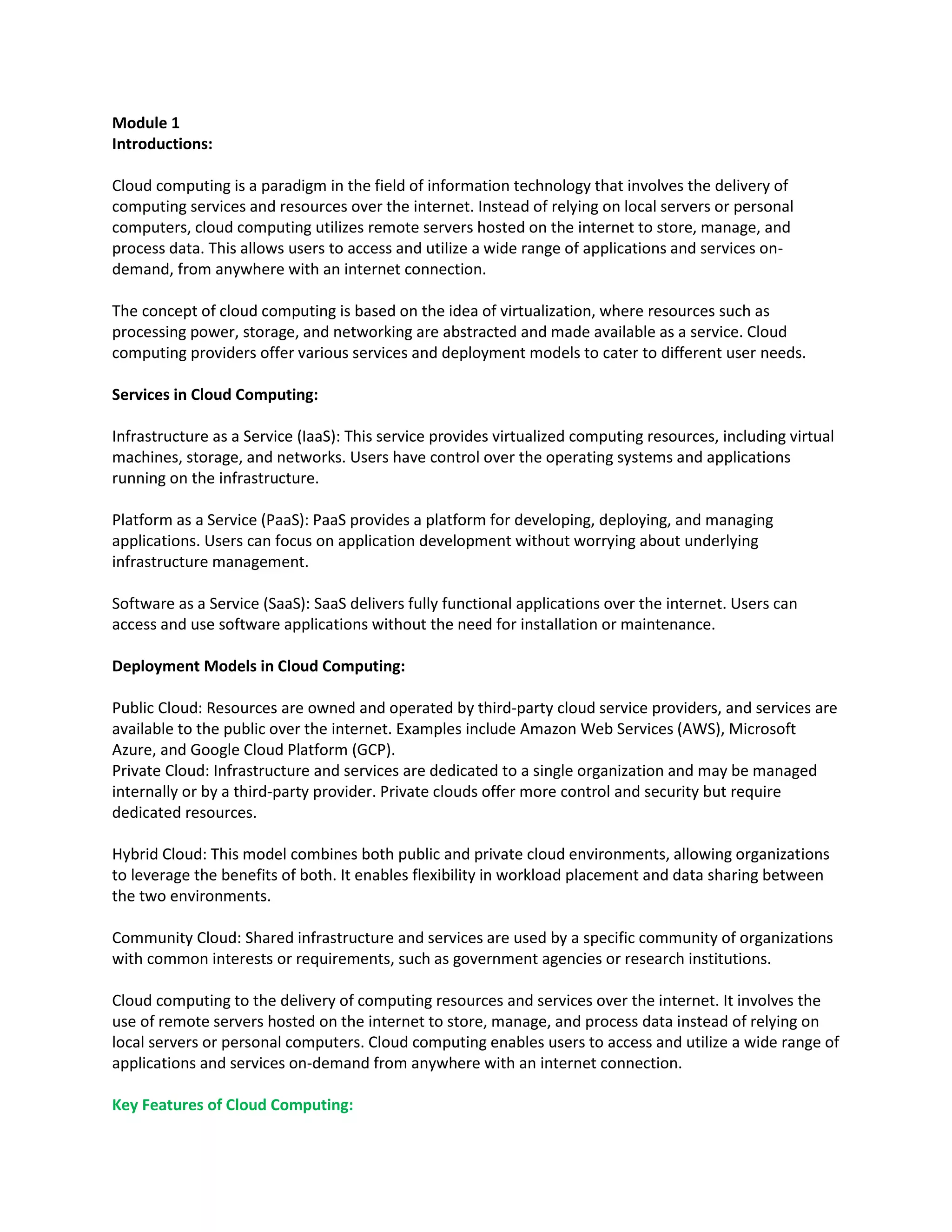 1. Cloud computing involves delivering computing resources and services over the internet instead of relying on local servers or personal computers. It enables users to access applications and store/process data using remote servers.