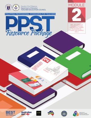 This document introduces Module 2 which focuses on using a range of teaching strategies to enhance learner achievement in literacy and numeracy skills. It provides an overview of the module contents and introduces key concepts such as literacy, numeracy, teaching strategies, and learner achievement. The module aims to help teachers examine the knowledge and skills needed to help learners gain fundamental literacy and numeracy skills."