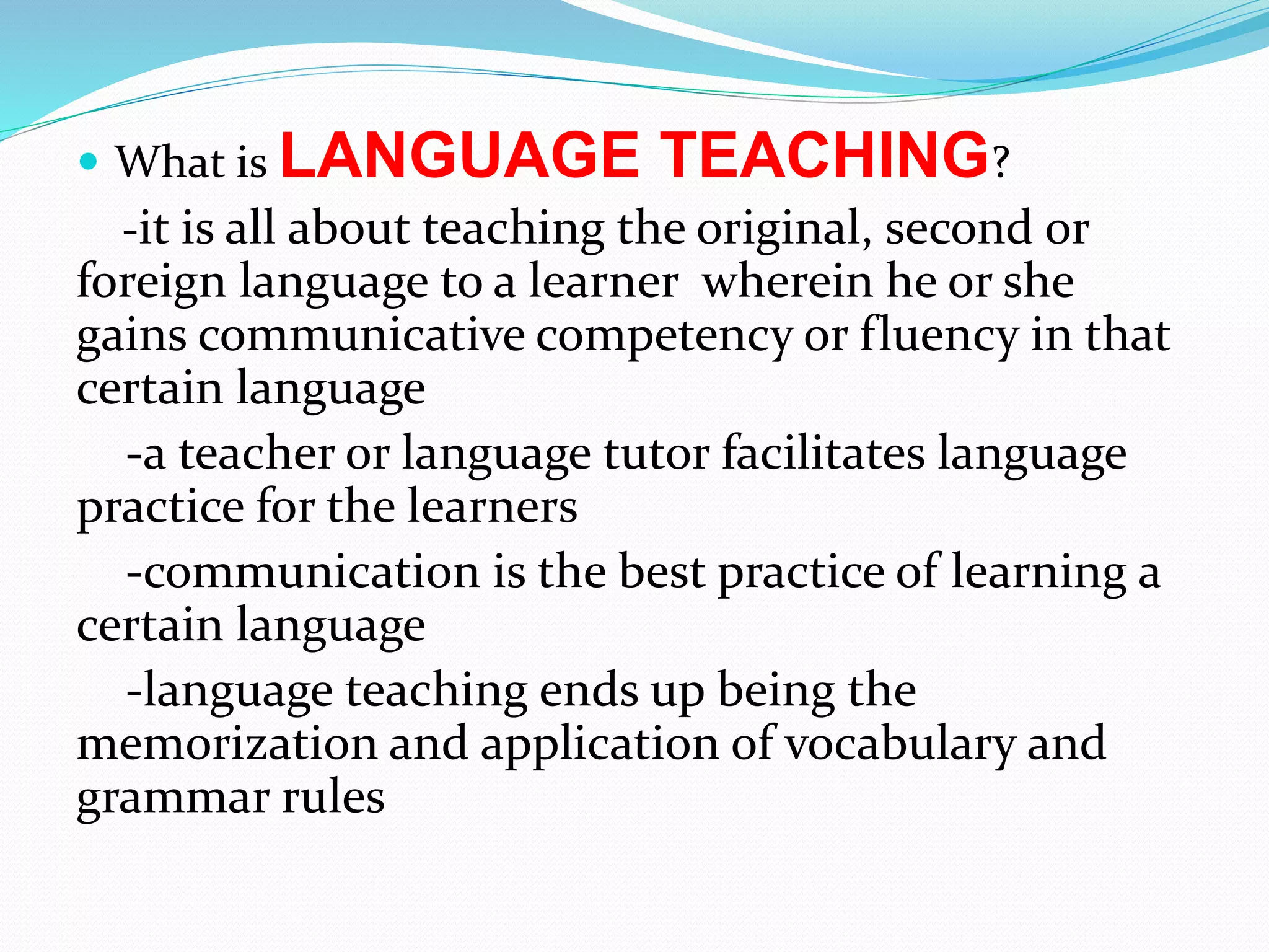 The document discusses the benefits of language teaching and learning. It states that language teaching involves facilitating practice to help learners gain communicative competence, with a focus on communication. It notes that language teaching requires scientific approaches and knowledge of linguistics and psychology. Effective language teachers encourage reflection on learning styles and structure the learning process to increase long-term language acquisition. The document then lists several benefits of multilingualism, including improved cognitive functioning, memory, multitasking, decision-making abilities, and career prospects in a globalized world.