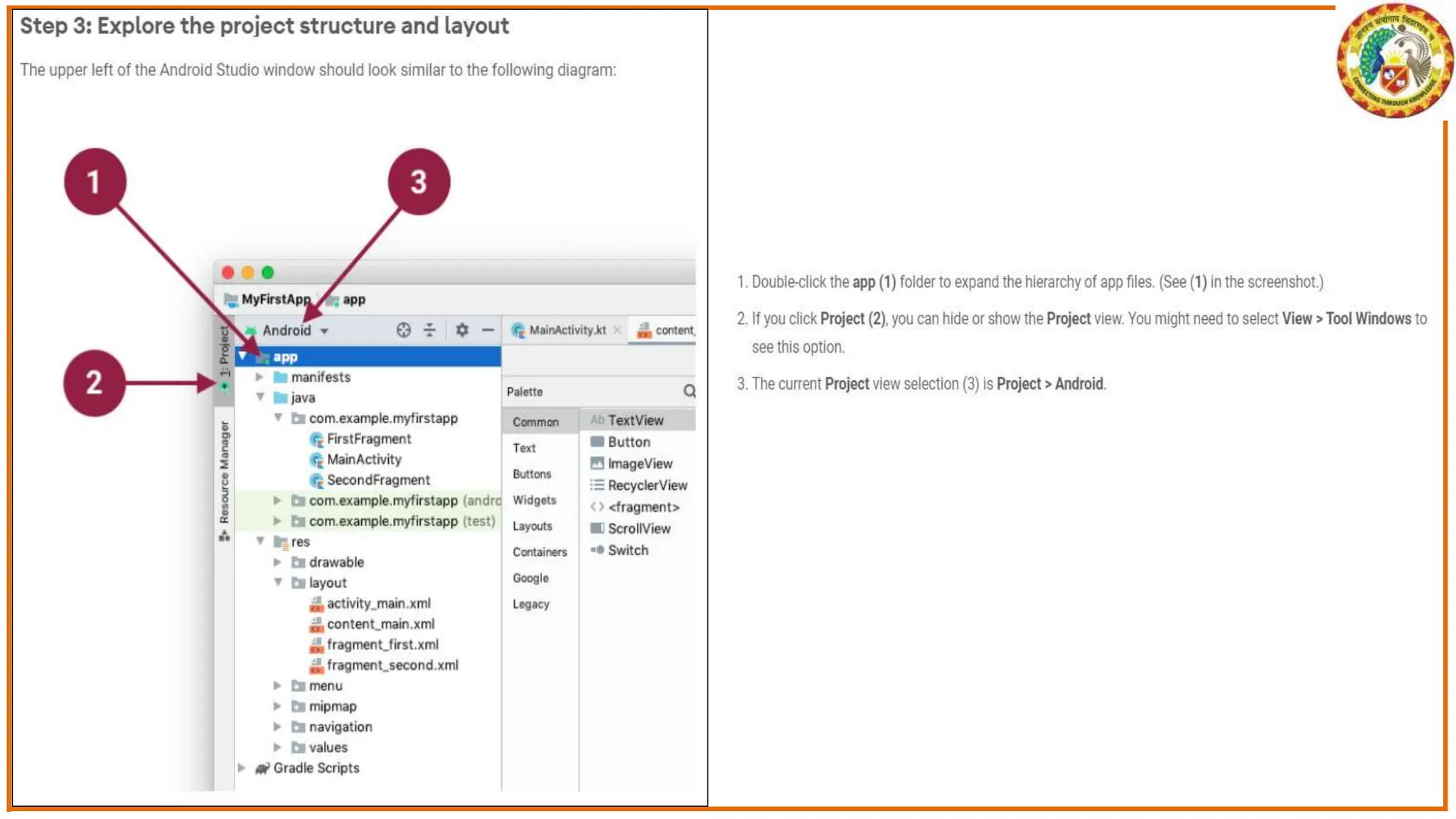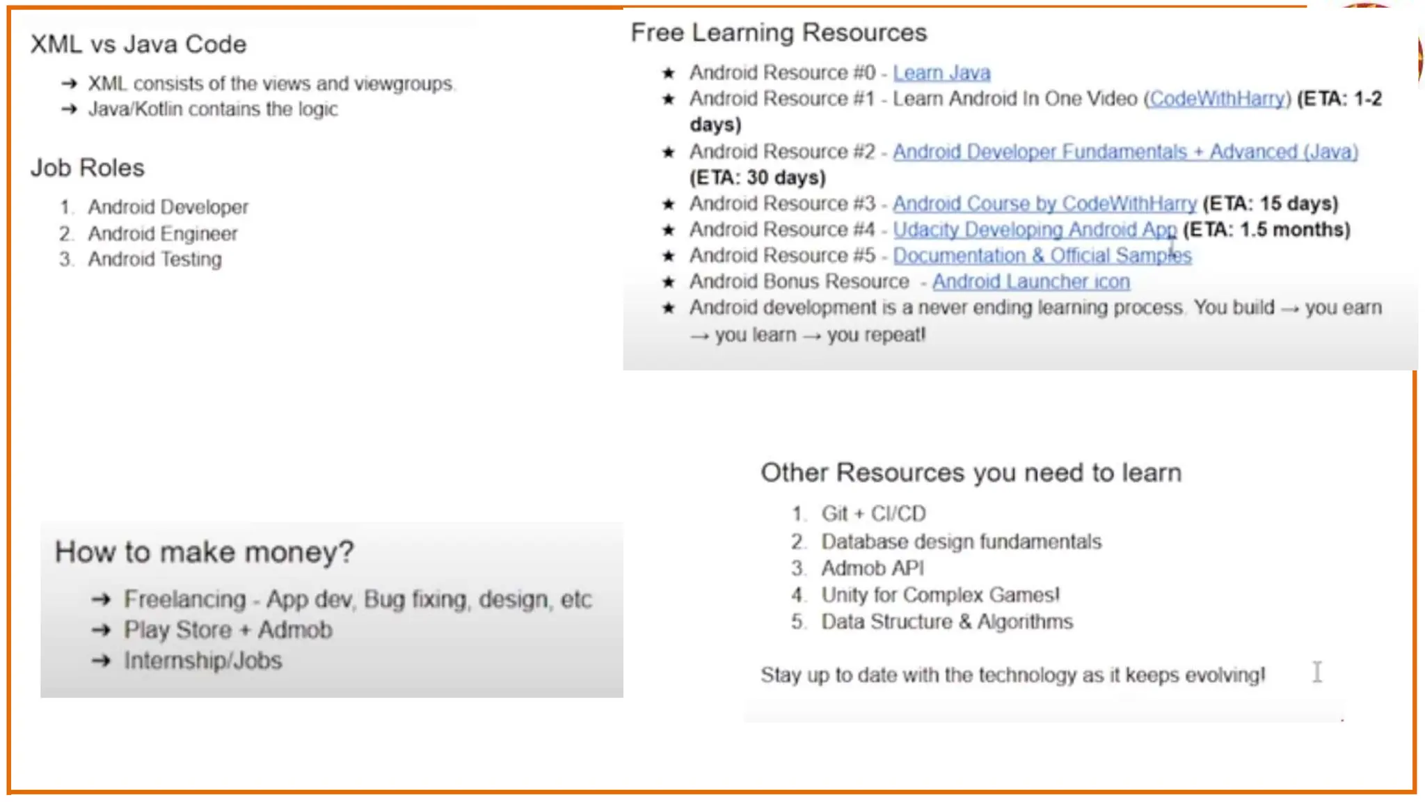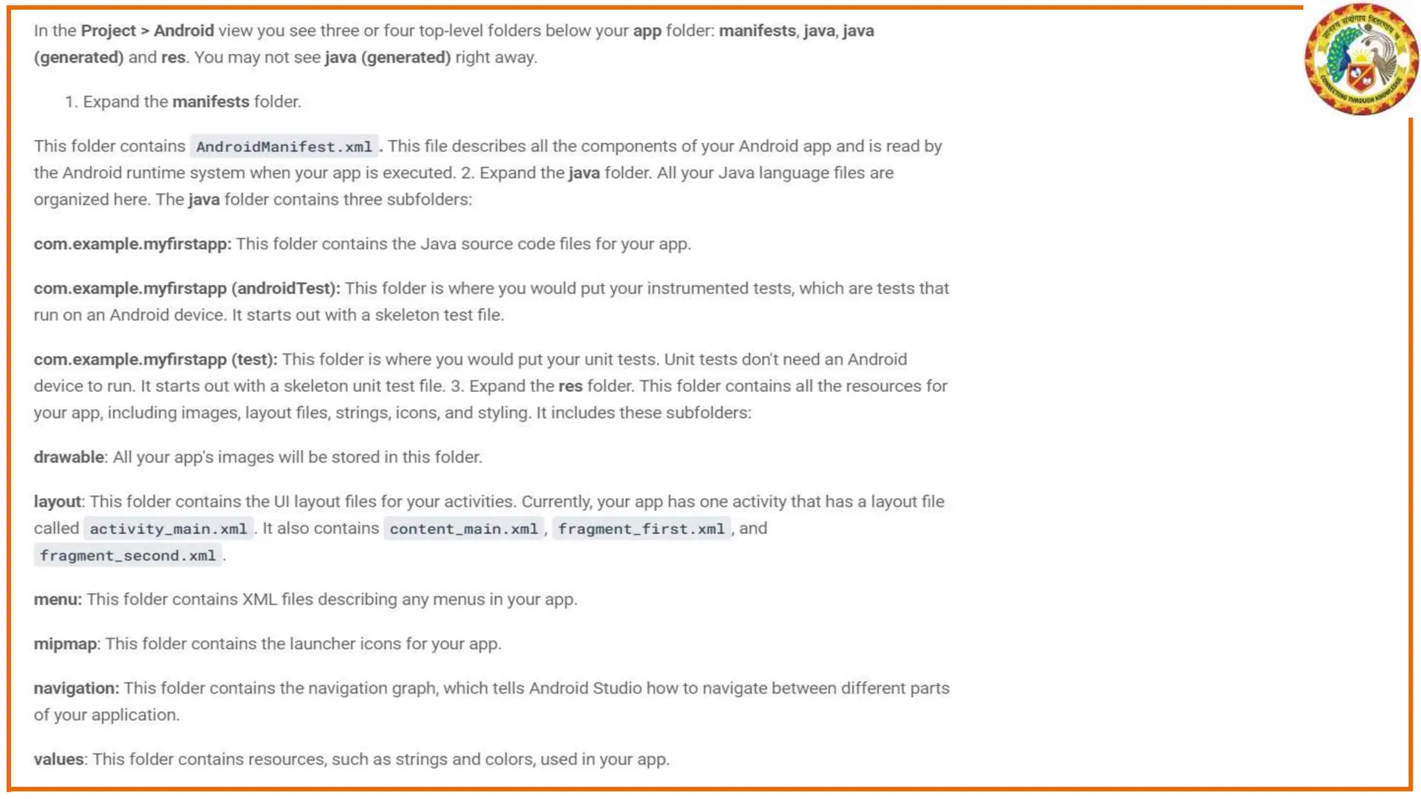 The document discusses the development of Android apps using Android Studio, including features and tools for coding, debugging, and testing. It outlines installation prerequisites such as Java JDK and provides a step-by-step guide for creating a simple 'Hello World' app. The document also covers troubleshooting common issues with Android Studio and device recognition.
