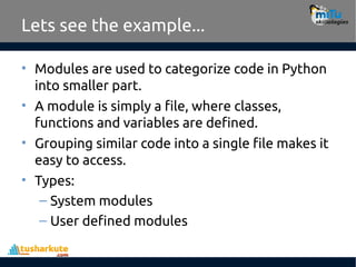 modules. Let us place msg1() in msg1.py, msg2() in msg2.py