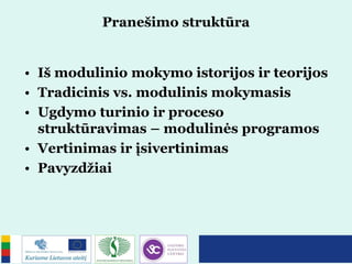 • Modulinio mokymo esmė – mokymo medžiagos ir proceso
