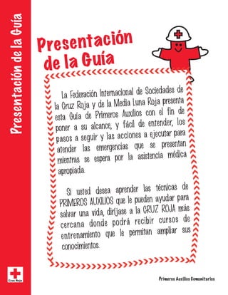 Гид по оказанию первых помощей, разработанный с участием национальных обществ Красного Креста, предоставляет информацию о том, как предотвратить и смягчить страдания людей в чрезвычайных ситуациях. Он охватывает основные принципы оказания помощи и описывает процедуры для различных типов травм и заболеваний. Этот документ служит ценным ресурсов для обучения и подготовки к оказанию помощи при несчастных случаях и в условиях бедствий.