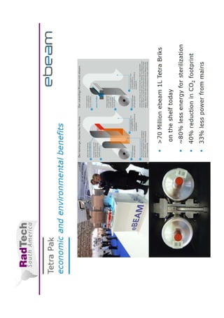 This document discusses applications of electron beam technology. It begins by describing electron beam accelerators and their uses in curing, sterilization, and other industrial processes. It then provides details on specific applications like curing coatings, composites, tires, and medical device sterilization. It also discusses food irradiation and the electron beam sterilization market. In general, the summary discusses how electron beams are used for curing, sterilization, and other industrial applications.