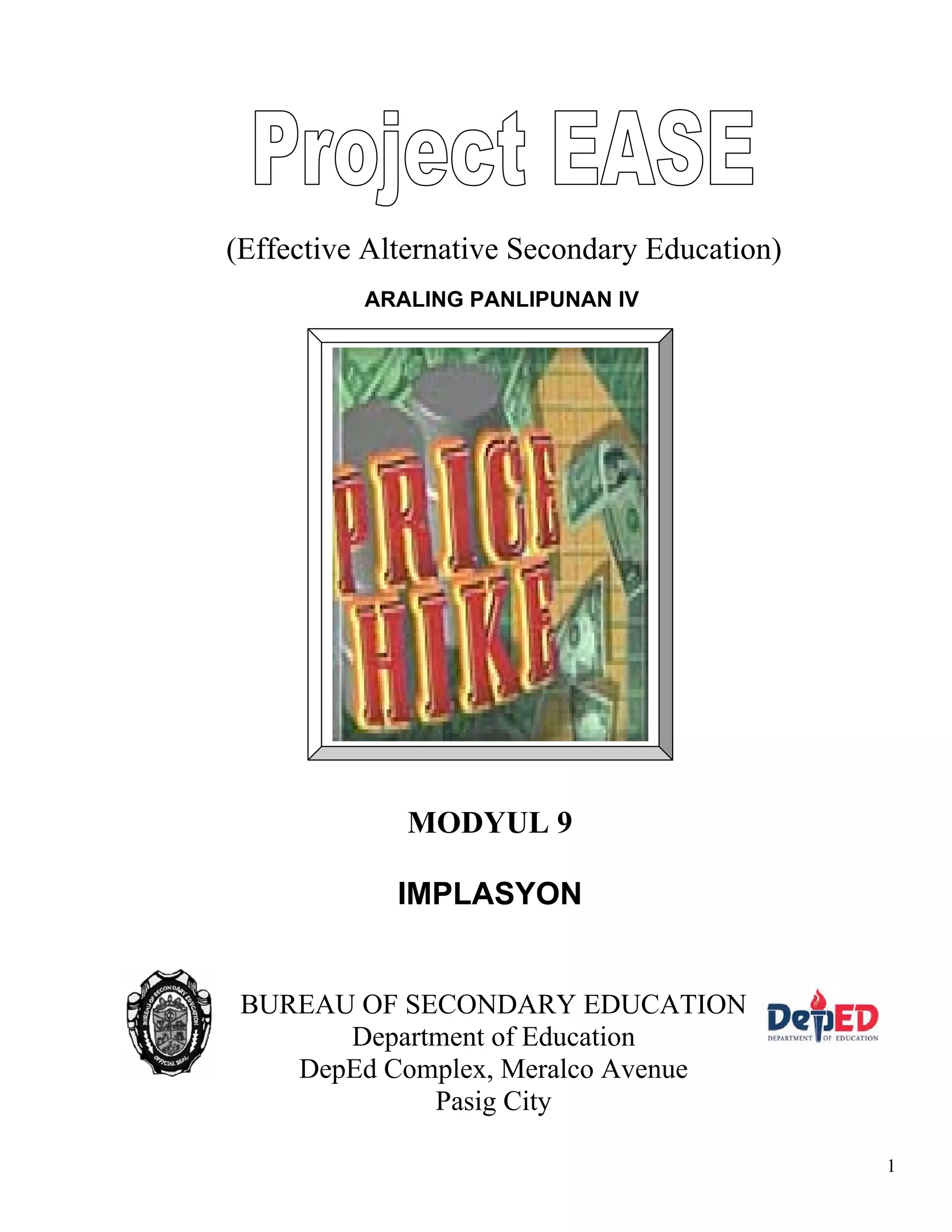 Tinalakay sa dokumento ang implasyon at ang epekto nito sa ekonomiya, kasama na ang pagtaas ng presyo ng mga bilihin at ang pagtaas ng halaga ng pamumuhay. Nakasaad din ang mga dahilan ng implasyon at mga hakbang upang ito ay maiwasan, pati na ang mga paraan ng pagsukat nito gamit ang consumer price index (CPI). Ang modyul ay naglalayong magbigay kaalaman sa mga estudyante tungkol sa konsepto ng implasyon at mga epekto nito sa personal at pambansang antas.