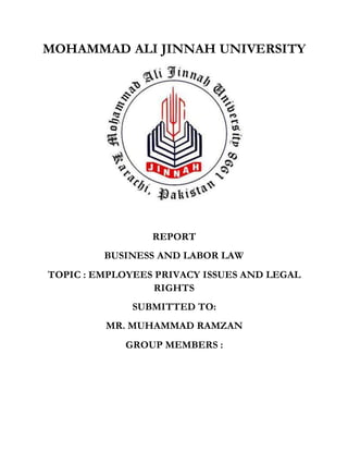 This document discusses employee privacy issues and legal rights in the workplace. It covers several topics: