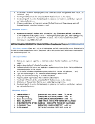 Mohammad Riyad Awad is an electrical engineer from Jordan seeking a new position. He has over 5 years of experience working on electrical engineering projects in Saudi Arabia. His experience includes working as a site engineer for electrical installations and supervising projects for road infrastructure, buildings, and industrial facilities. He is proficient in electrical design, project management, and coordination between engineering disciplines. He has a bachelor's degree in electrical power engineering and has completed additional training courses in controls systems, power distribution, and fire protection systems.