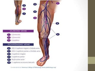 • Vene donjeg ekstremiteta se dele na površne I duboke