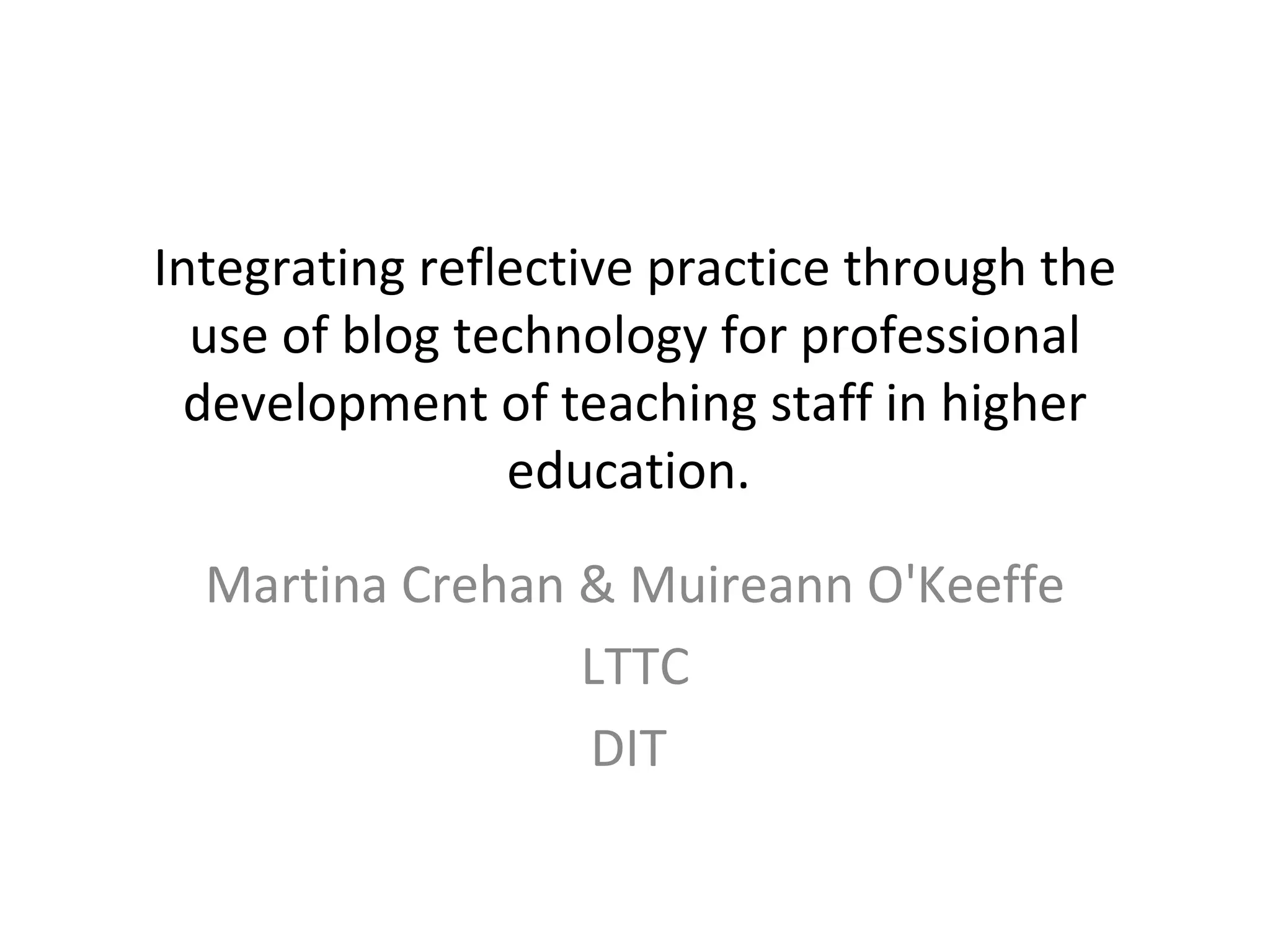 This document discusses using blogs to promote reflective practice among teaching staff in higher education. It describes how reflection helps evaluate and improve teaching by enabling teachers to critically examine their experiences and plan future actions. The authors implemented a blogging tool with teaching staff and collected data through surveys and interviews to study how blogs supported reflective practice. Their findings provide implications for using blogs as a tool to scaffold the development of teaching practice through reflection.