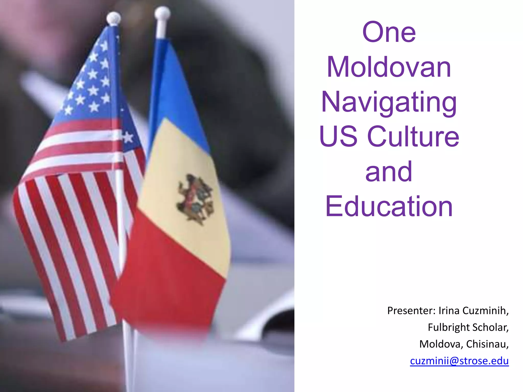 This document summarizes the experience of Irina Cuzminih, a Fulbright scholar from Moldova. It discusses her fluency in three languages, including Romanian and Russian which are both official languages in Moldova. It also touches on her experience learning English as a foreign language starting in 2nd grade, as well as her education, including studying English philology and computer science. The document compares some cultural aspects between Moldova and the US, such as traditional Moldovan foods versus American culture, and ends by inviting questions.