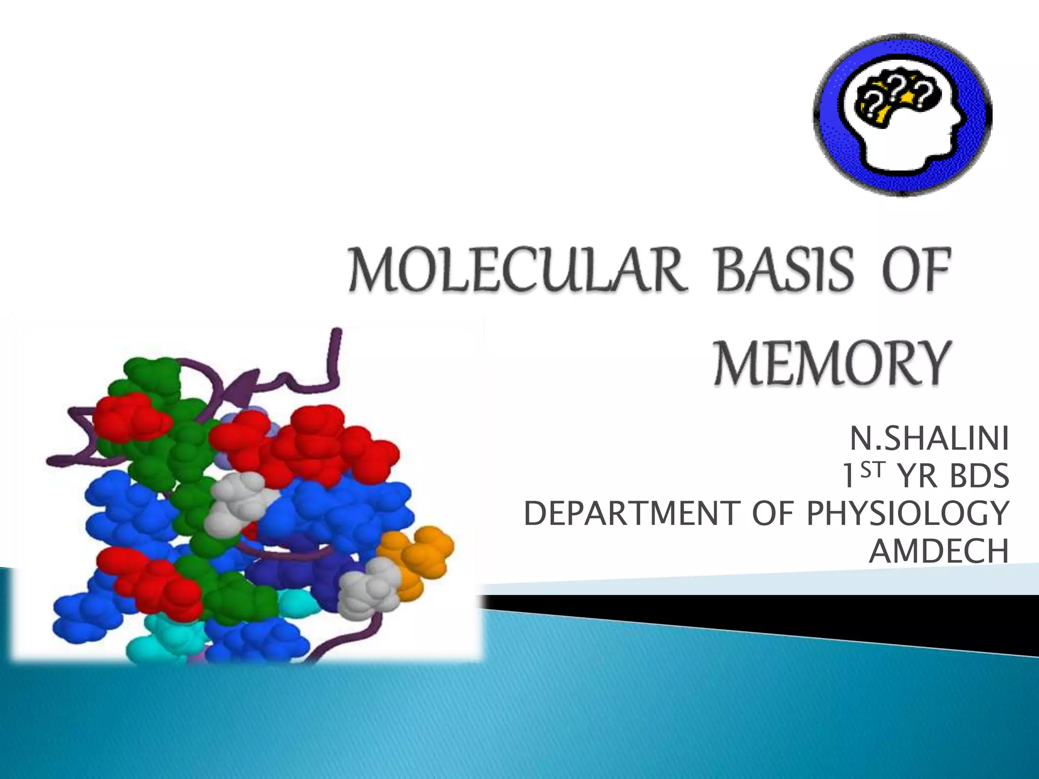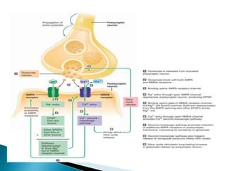 The document discusses memory formation and the neurological mechanisms underlying it. It describes how memory involves encoding, storage, and retrieval of information, and involves both short-term and long-term memory. Key areas of the brain involved in memory formation include the hippocampus, amygdala, and cerebral cortex. Memory formation occurs through processes like long-term potentiation that strengthen synaptic connections. Various neurotransmitters and proteins play important roles as well.
