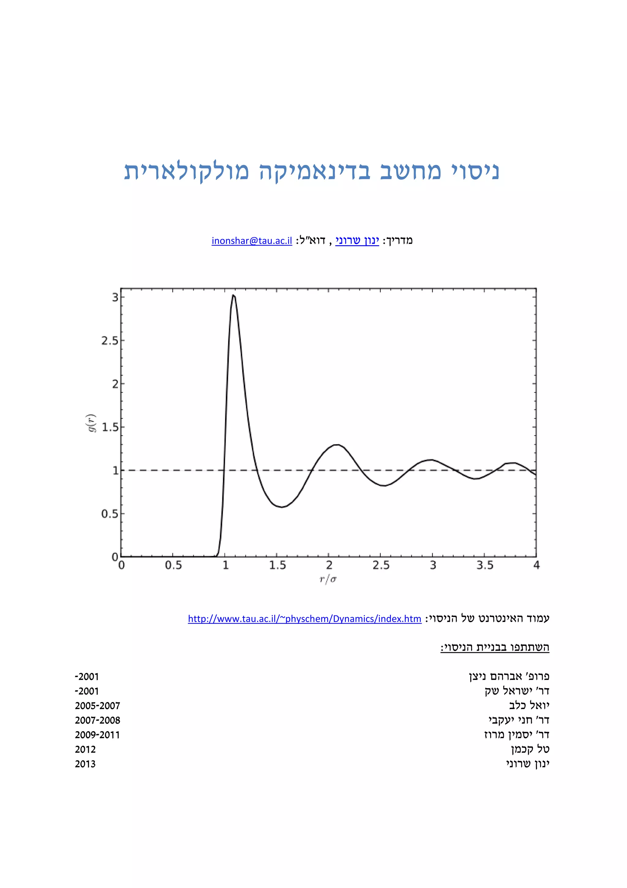 The Advanced Lab in Chemical Physics, Department of Chemical Physics, Tel Aviv University.