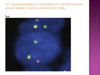 This document discusses the utility of integrating molecular genetics with soft tissue pathology. Key points include: