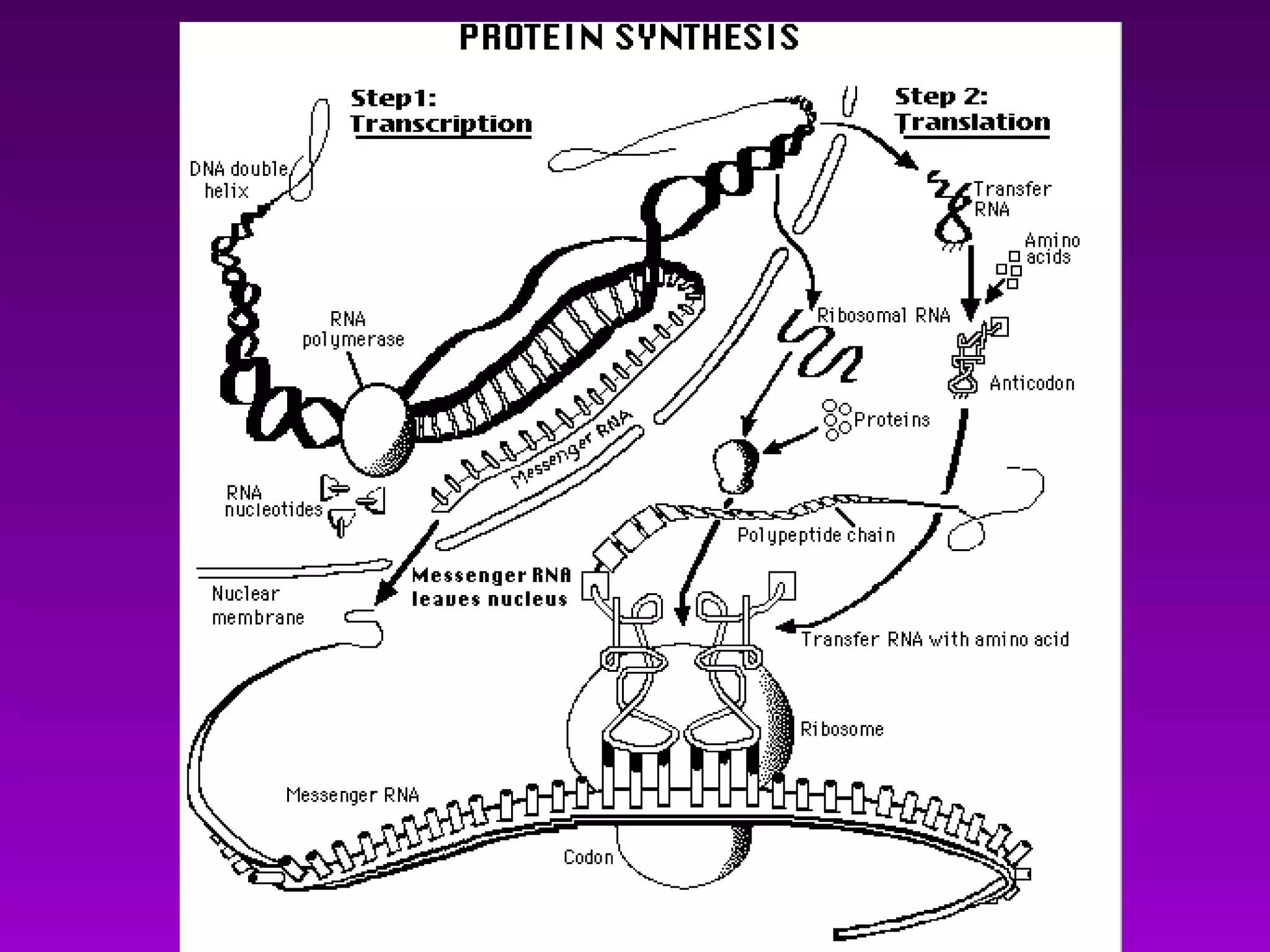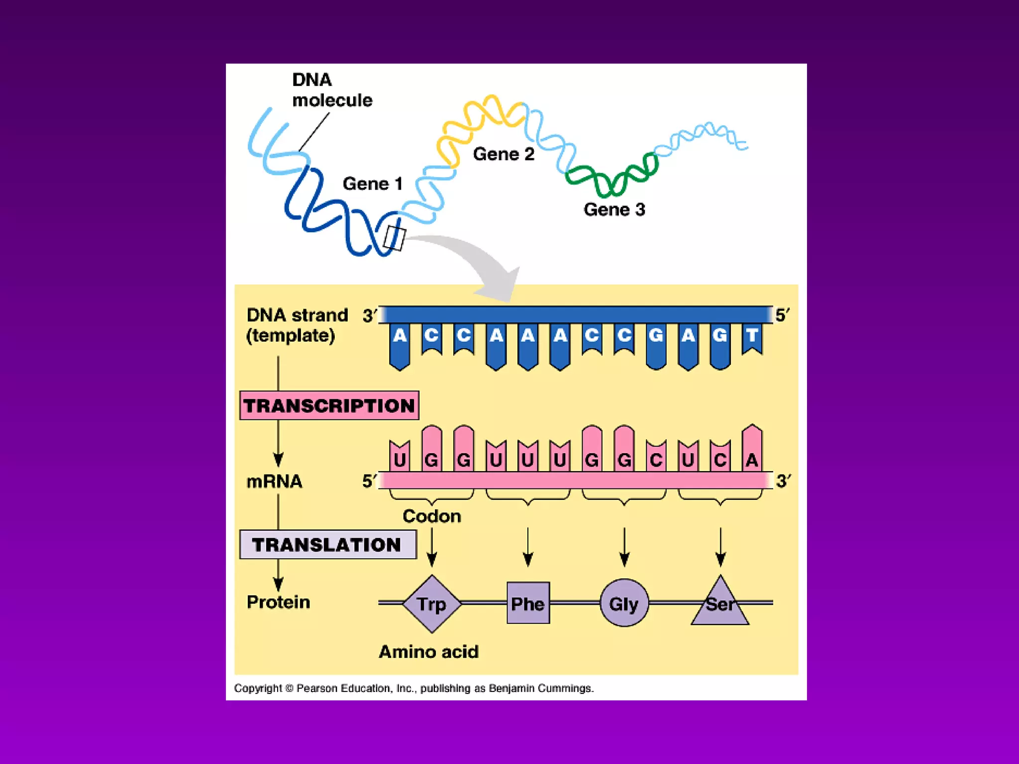 1) How early experiments established that genes encode proteins through RNA intermediates. One gene encodes one polypeptide.