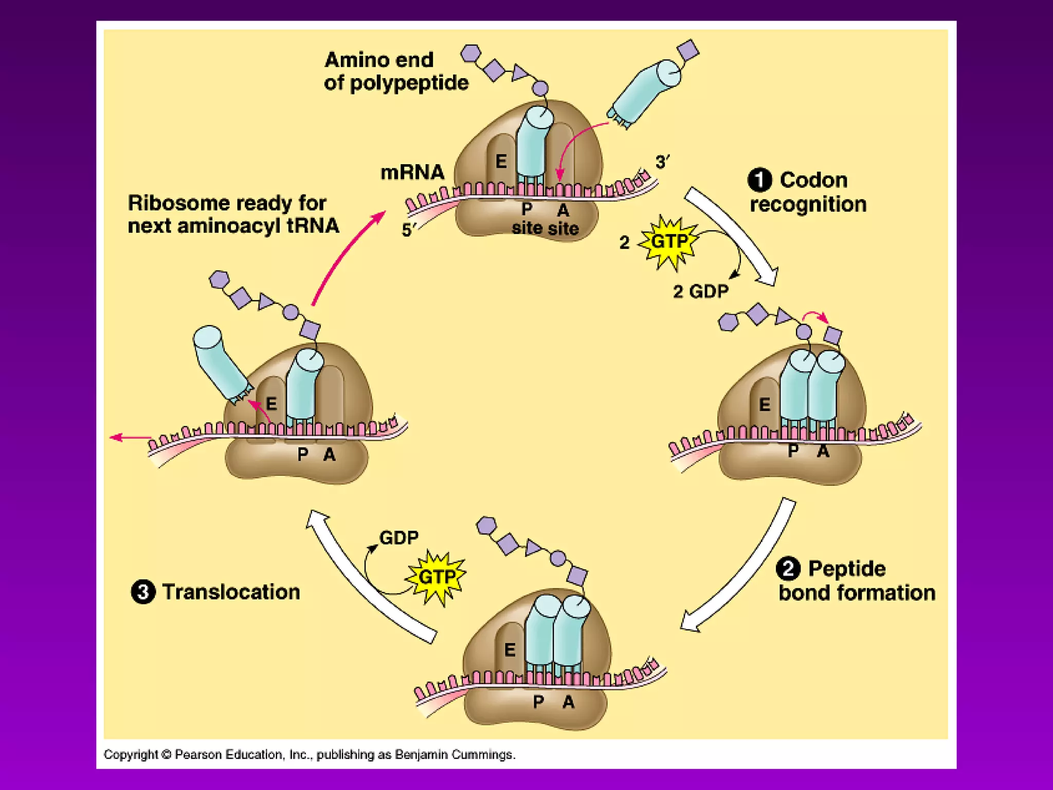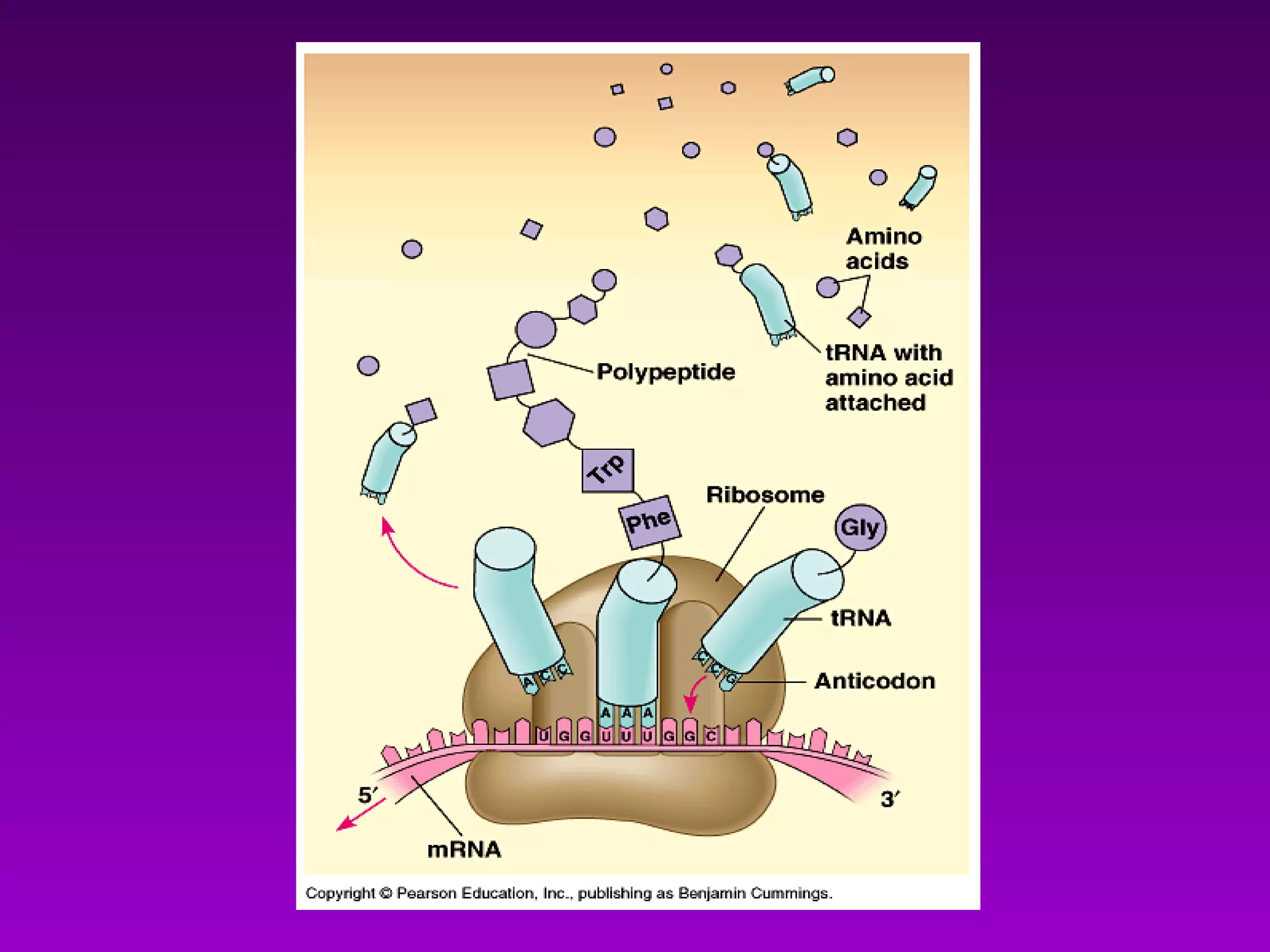 4) Translation occurs on ribosomes, where mRNA directs the assembly of amino acids into polypeptides according to the genetic code