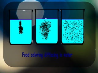 This document discusses and classifies different types of molecule movement across cell membranes. It describes passive transport which includes diffusion, osmosis, and dialysis and requires no energy as molecules move from high to low concentration areas. Active transport is also discussed which requires energy for molecules to move against a concentration gradient or into the cell. Specific examples of osmosis and dialysis are provided.
