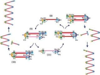 This document discusses various molecular techniques used for diagnosis of infectious diseases. It notes that molecular methods are most useful for pathogens that are difficult to detect by conventional methods, like Mycobacterium tuberculosis and Chlamydia trachomatis. It describes techniques like PCR, NASBA, TBA, SDA, LAMP that amplify nucleic acids from pathogens. Other methods discussed include plasmid profiling, nucleotide sequencing, restriction fragment length polymorphism (RFLP), and nucleic acid hybridization. The document provides details on how several of these techniques work and their applications in microbial identification, detection of antibiotic resistance, and epidemiological studies.