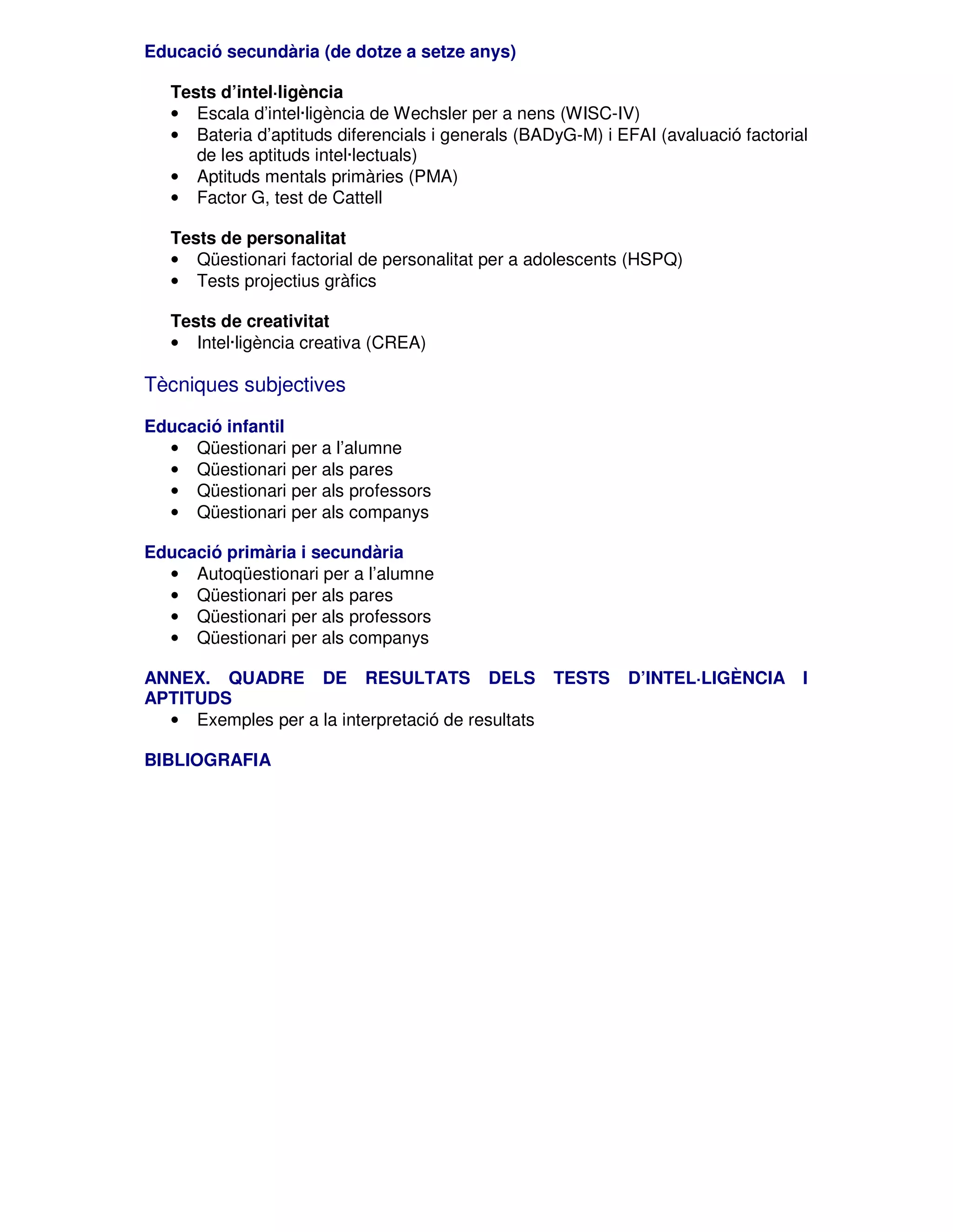 s’utilitzen en l’àmbit de les altes capacitats. En la segona part, trobareu una manera