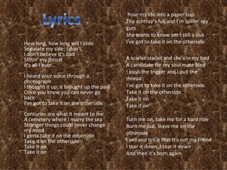 The song "Otherside" by Red Hot Chili Peppers is about the death of former band member Hillel Slovak from a heroin overdose. The lyrics describe Slovak's struggle with addiction and craving for drugs, as well as his unsuccessful attempts to fight the addiction. The song serves as a tribute to Slovak and commentary on the grips of substance abuse.