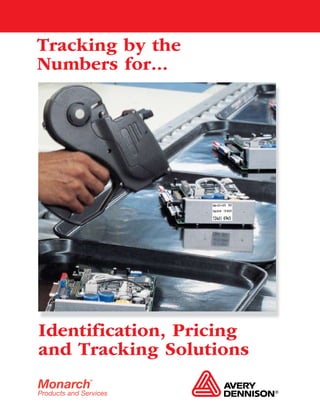 This document discusses identification, pricing, and tracking solutions for increased productivity, quality control, and inventory control throughout the production process. Labels are available in various colors and can include custom prints and preprints. They are used at multiple stages including order entry, receiving raw materials, work in process, quality control, inventory control, packing, and shipping. Labels help properly route materials and products, identify orders and jobs, and maintain records.
