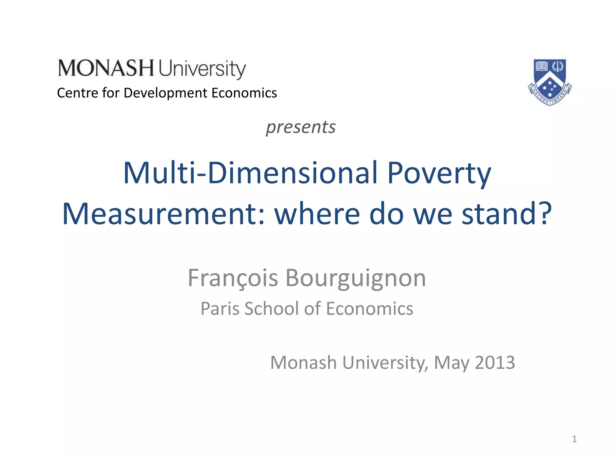 The document discusses multi-dimensional poverty measurement, highlighting the complexities and various approaches, including the capability approach, statistical methods, and the counting approach. It evaluates existing measures, questions the effectiveness of aggregating dimensions into single indicators, and emphasizes the importance of understanding different dimensions of poverty. The conclusion reflects ongoing debates and the necessity for appropriate frameworks and measures in understanding poverty.