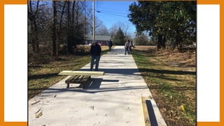 The document summarizes a Monday Meetup focused on walking initiatives supported by TNCEP. It discusses starting walking programs in communities and how TNCEP agents can assist. Speakers shared experiences launching walking trails in Coffee and Pickett Counties. They emphasized partnering with groups, creating safe routes, and programming to engage families. Proper evaluation was stressed to track outcomes like physical activity levels and report impacts to funders. Attendees learned how monitoring progress and collecting data on participants, reach, and environmental changes helps assess the value of their work.