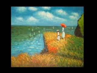 Claude Monet was an impressionist painter born in 1840 and died in 1926. Some of his most famous works include paintings such as Lady With Parasol, Haystack in the Snow Sunshine, House of Parliament, and The Hunt. He also painted self portraits throughout his career.