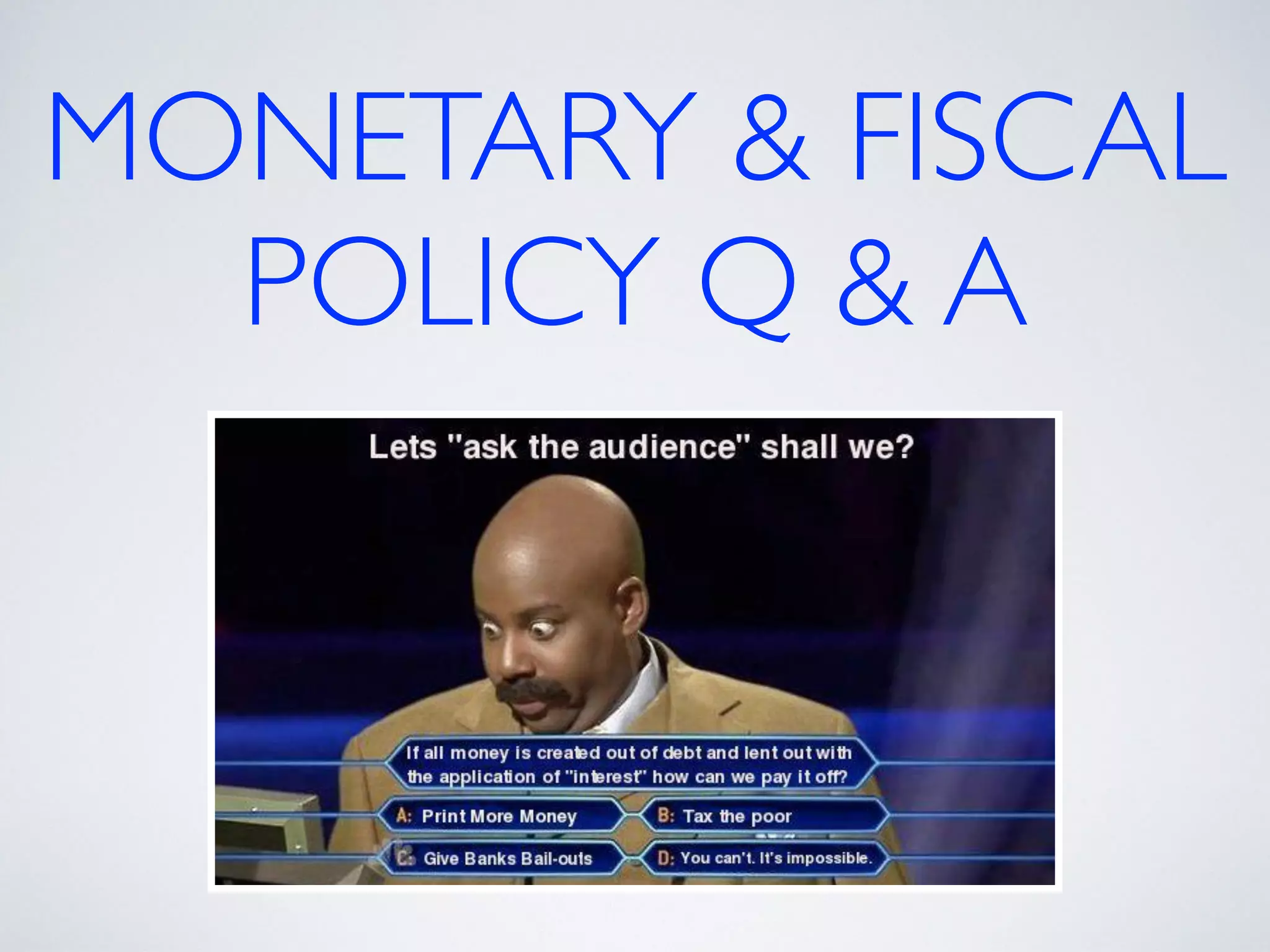 This document contains a question and answer session about monetary and fiscal policy. It discusses several key points: