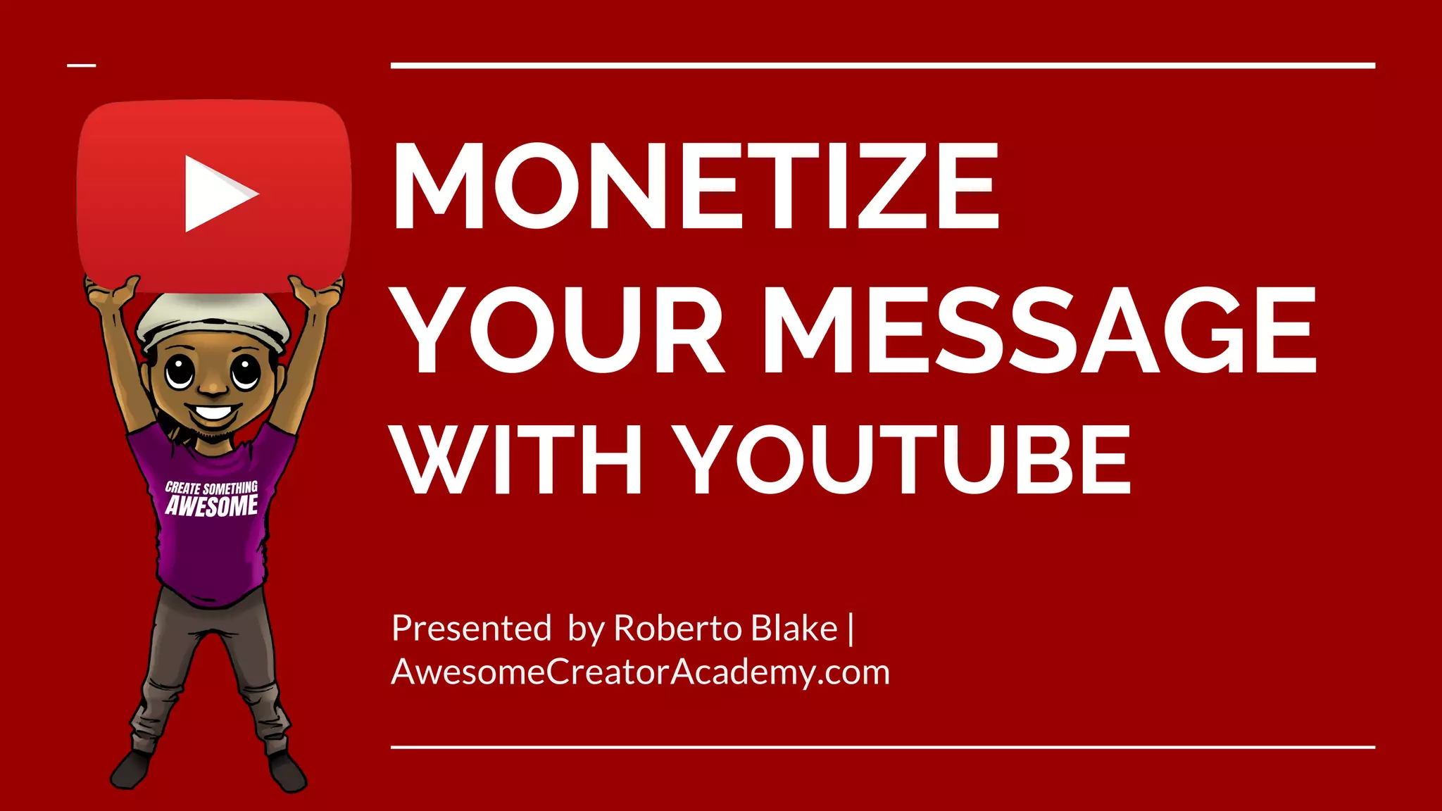 Roberto Blake's presentation on monetizing content on YouTube emphasizes viewing the platform as a vehicle for generating income rather than a sole destination. It outlines three levels of monetization: independent earnings, platform-dependent revenue, and brand partnerships, along with various methods such as ad revenue, merchandise, and affiliate programs. The key takeaway is to diversify revenue streams, create valuable content, and avoid reliance on any single income source.