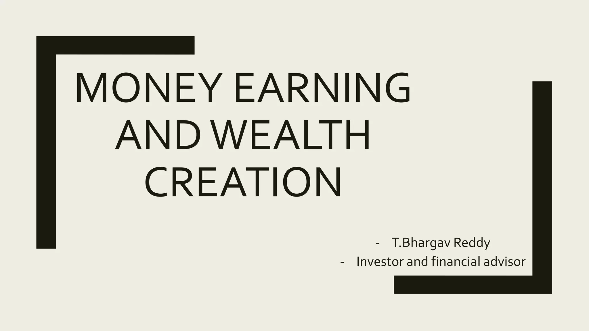 The document outlines the essentials of wealth creation, emphasizing the need to make, save, and invest money over time. It highlights the importance of choosing the right investments that align with financial goals and dedicating time for these investments to grow. The text also provides practical steps for saving and investing, including tracking spending, setting savings goals, and understanding various investment options like stocks, bonds, and mutual funds.