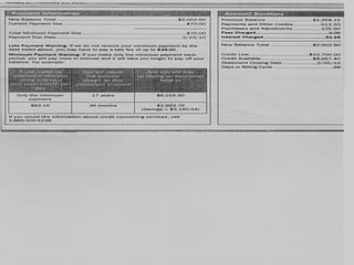 The document provides an overview of credit, loans, and how to manage debt effectively. It outlines credit guidelines for houses, cars, and education, as well as the importance of establishing and maintaining a positive credit history. Additionally, it discusses budgeting, the reasonable levels of debt, warning signs of excessive debt, and strategies for breaking free from debt.