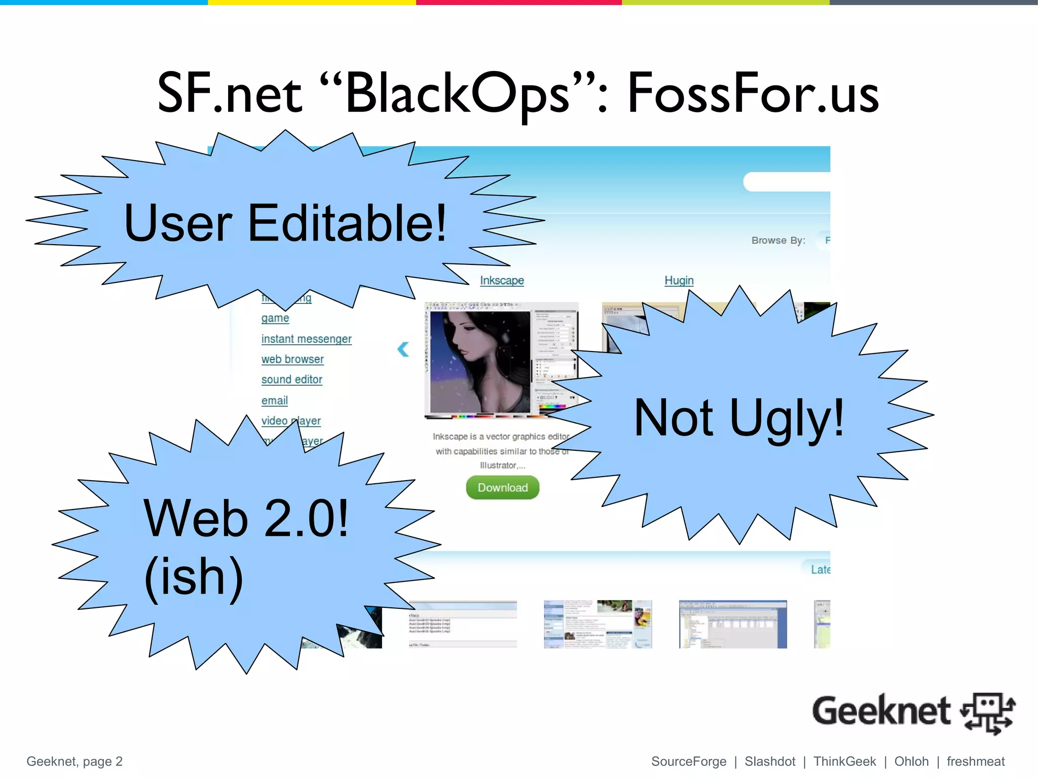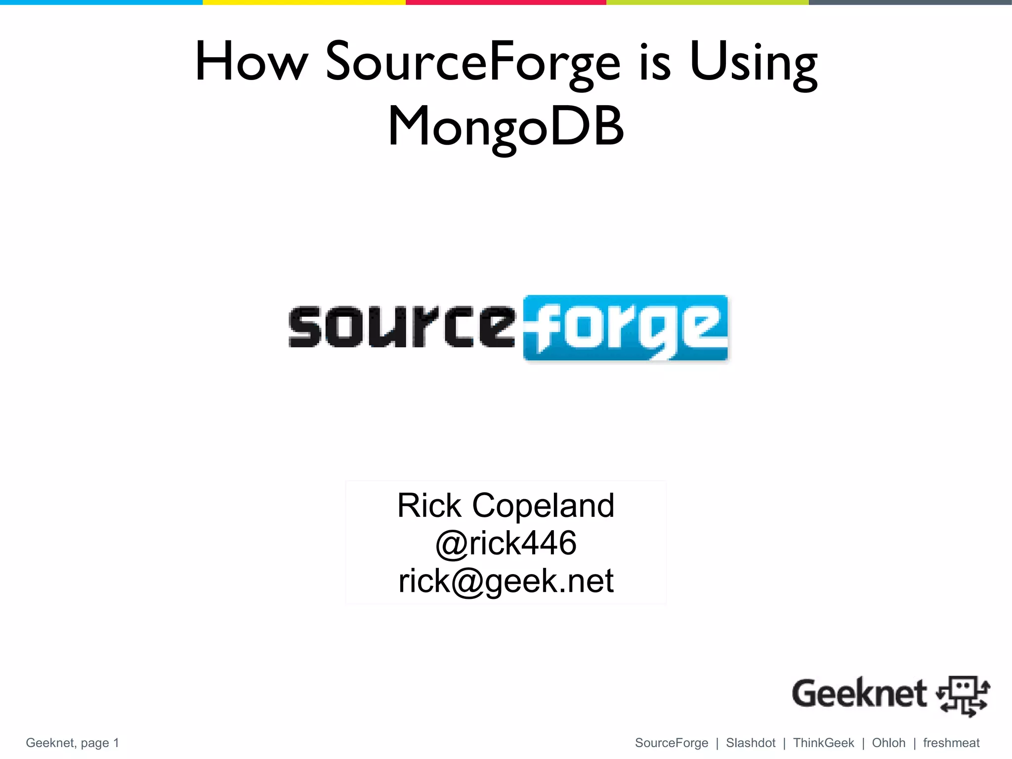1. SourceForge is using MongoDB as the database for their website to improve performance and scalability over their previous CouchDB implementation.