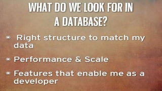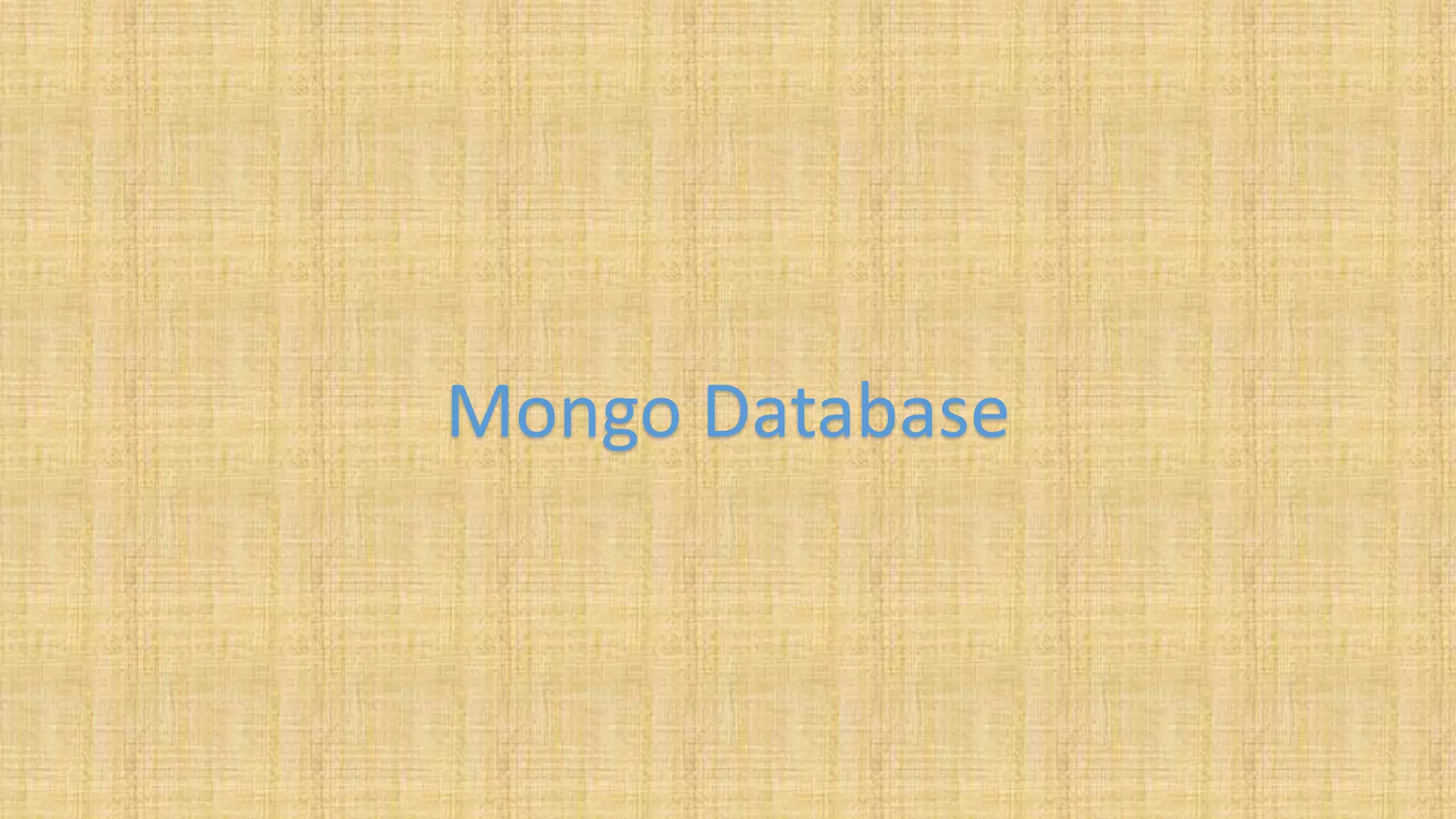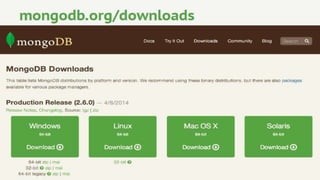 The document discusses MongoDB, a NoSQL database characterized by its document-oriented storage model, performance benefits, and ease of use. It highlights MongoDB's evolution, features such as document and collection structures, and key advantages like schema flexibility and built-in replication. The content also covers operational aspects, data modeling strategies, pros and cons, and provides resources for further learning.