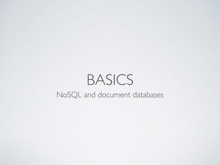This document provides an introduction to MongoDB, a document database. It discusses basics of NoSQL and document databases, and covers key MongoDB concepts like replication and sharding, geospatial indexing, CRUD operations, and modeling data. It also demonstrates connecting to MongoDB from PHP and using the Doctrine ORM.