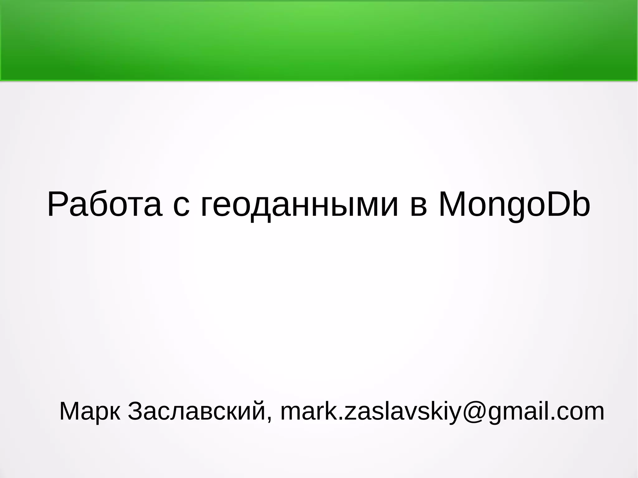 Доклад посвящен работе с геоданными в MongoDB, включая обзор возможностей и подходов к хранению, индексации и запросам к геоданным с использованием формата GeoJSON. В нем рассматриваются основные команды для работы с данными, примеры индексов, таких как 2dsphere и geohaystack, а также методы агрегации и фильтрации по пространственным критериям. Доклад также включает рекомендации по чтению и использованию платформы geo2tag для создания геоконтекстных сервисов.