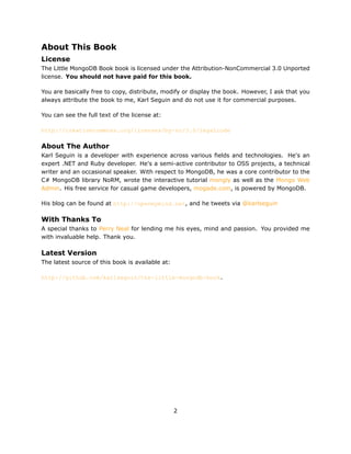 The document describes the basics of MongoDB, including that it uses databases containing collections which are made up of documents with fields. Collections can be indexed to improve performance of lookups and sorting. When data is retrieved from MongoDB, it is through a cursor which delays execution until needed. While similar concepts exist in relational databases, MongoDB's documents can have unique fields compared to tables with predefined columns.
