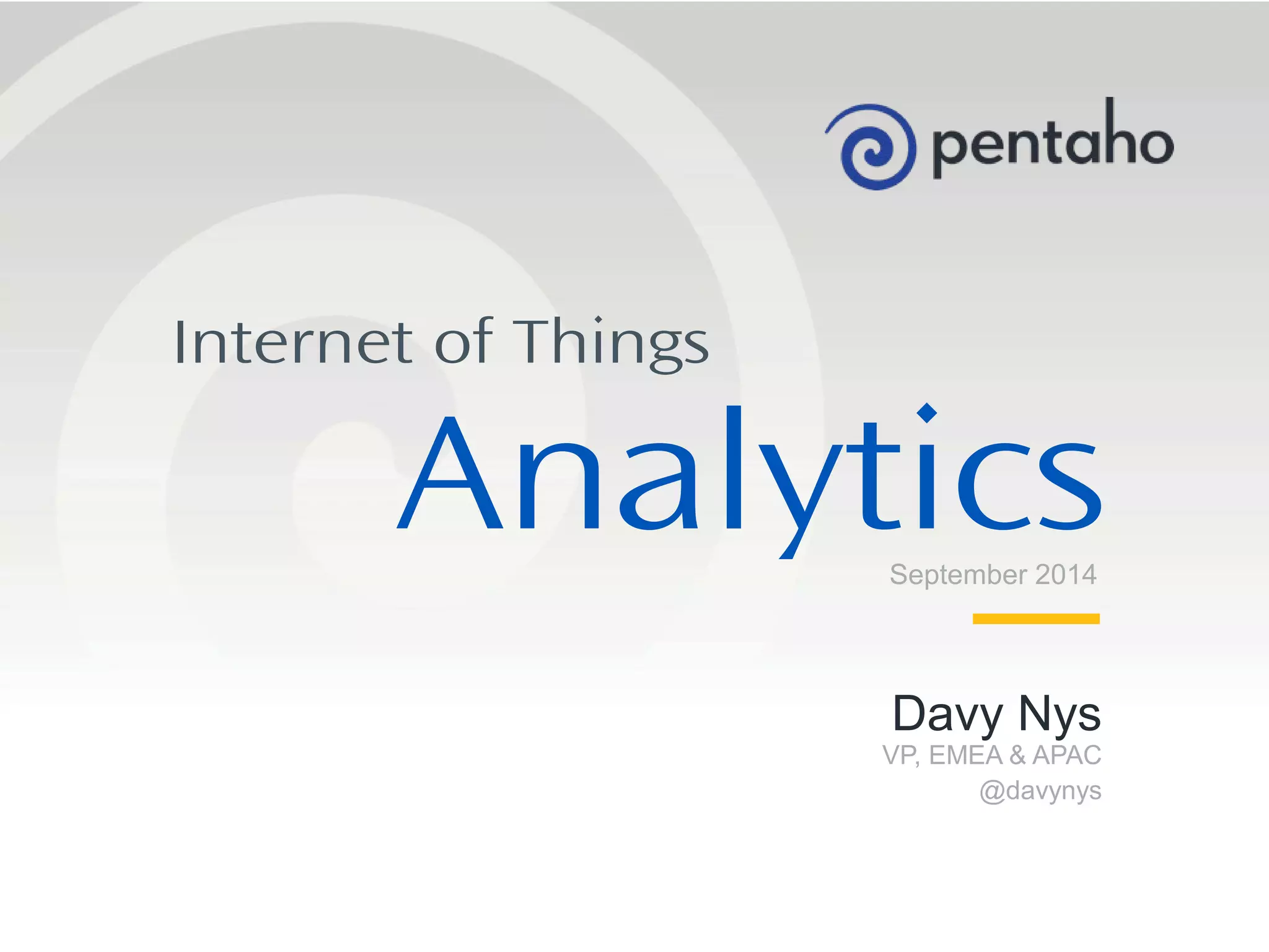 The document discusses the Internet of Things (IoT) and its implications for analytics, emphasizing the need for near real-time process-driven analytics and the integration of diverse data types. It highlights the importance of self-service analytics and blending multiple data sources to enhance operational effectiveness and customer experience. Additionally, it outlines strategies for building 360-degree views of customers and utilizing big data for predictive analytics.