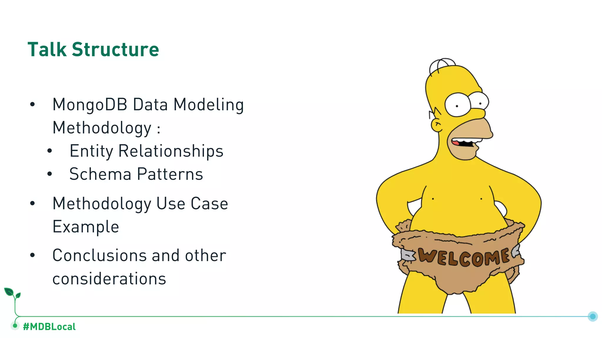 The document outlines a comprehensive methodology for data modeling in MongoDB, detailing steps such as defining schemas, developing applications, and addressing concerns about denormalization and schema evolution. It provides practical examples, including entity relationship diagrams and considerations for various application workloads in specific use cases like online shopping. Additionally, it discusses schema patterns and their application to optimize performance while adapting to business needs over time.