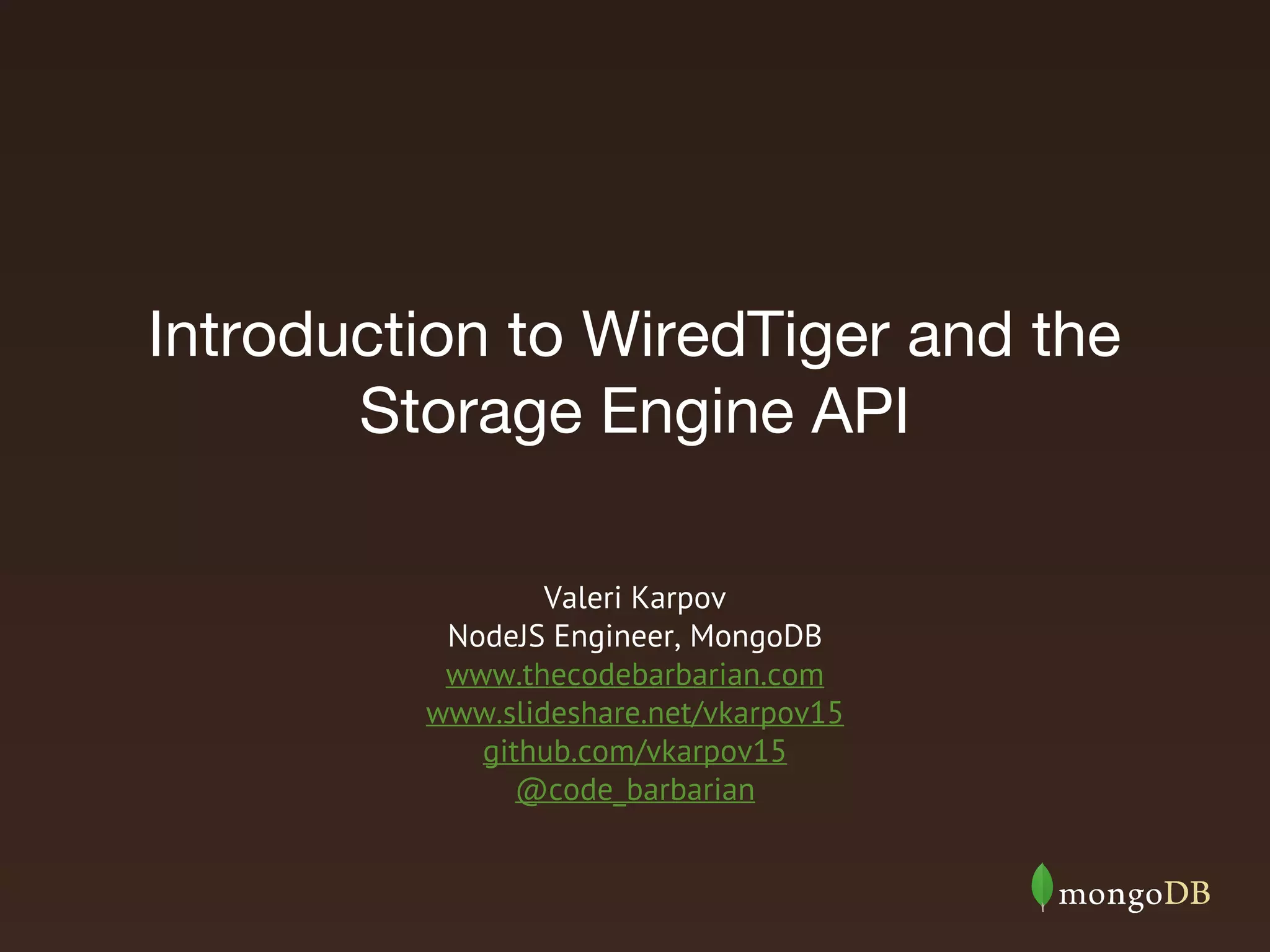 This document provides an overview of WiredTiger and the MongoDB storage engine API. It discusses how WiredTiger differs from the mmapv1 storage engine in its use of document-level locking, compression, and consistency without journaling. It also covers WiredTiger internals like checkpoints, configuration options, and basic performance comparisons showing WiredTiger can provide higher throughput than mmapv1 for write-heavy workloads.