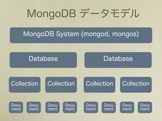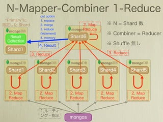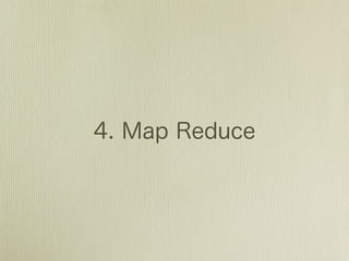 The document shows examples of queries that can be performed on a MongoDB collection, including finding documents by field values, regular expressions, and querying embedded documents, as well as update operations like setting values, incrementing values, pulling from arrays, and adding to arrays. It also provides examples of MapReduce operations in MongoDB and using finalize functions.