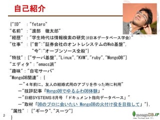 ビデオ:http://www.mongodb.com/presentations/mongodb-world-2014-keynote-eliot-horowitz