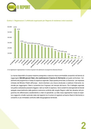 A febbraio 2015, il programma 'Garanzia Giovani' ha registrato 412.015 giovani, con un incremento di 10.000 iscritti rispetto all'ultima rilevazione. La maggior parte dei partecipanti è concentrata in Campania, Sicilia e Lazio, e il 53% dei registrati appartiene alla fascia d'età 19-24 anni. Tra gli iscritti, il 28,6% è stato preso in carico per misure di supporto e integrazione al mercato del lavoro.