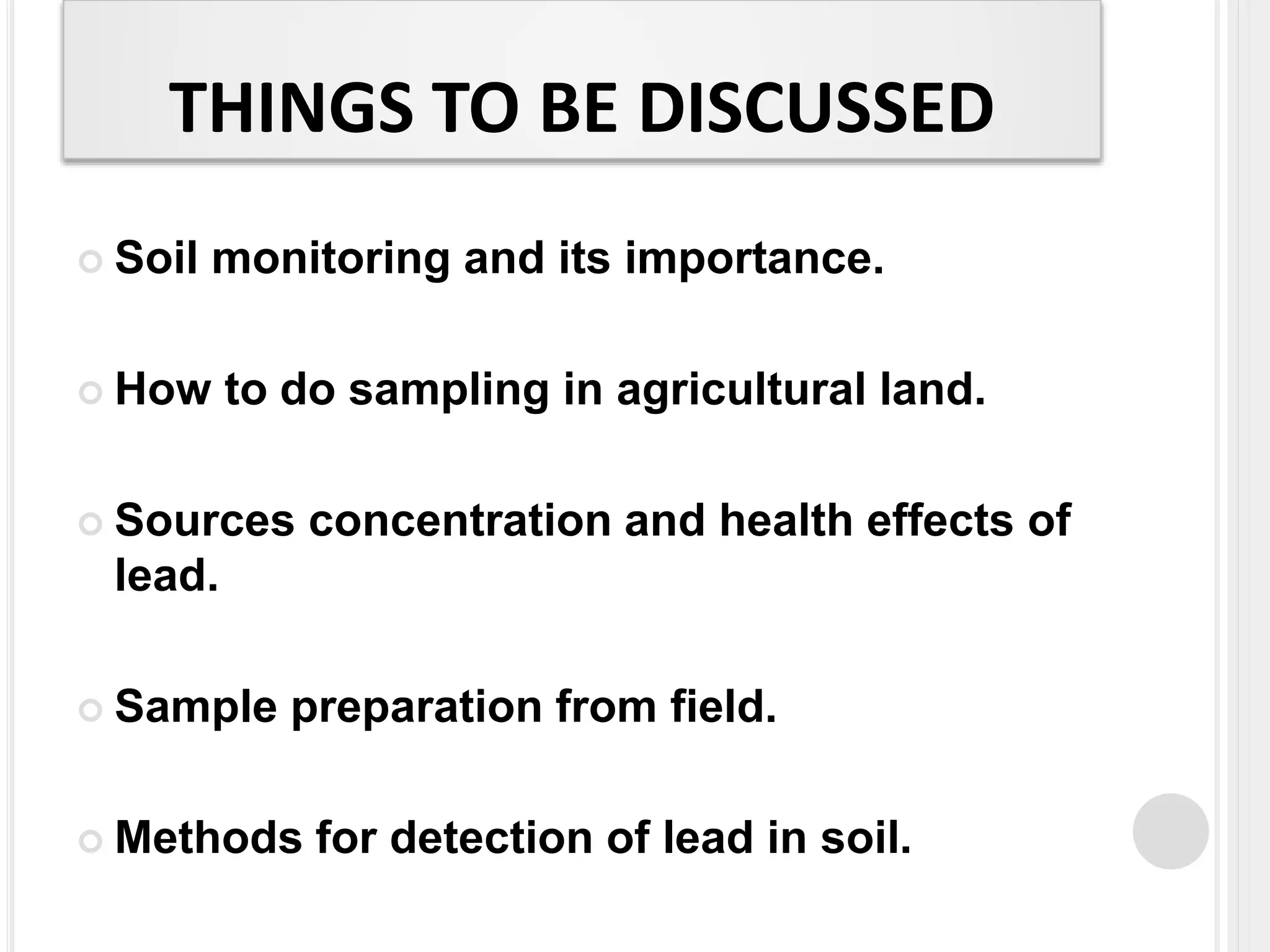 The document discusses monitoring lead levels in soil samples collected from agricultural fields around Lahore. It outlines the importance of soil monitoring for sustainable crop production and maintaining nutrient levels. The document provides guidance on proper soil sampling techniques including sampling location, depth, and handling. It also details sources of lead contamination and potential health effects. Finally, it presents methods for detecting lead in soil samples, such as lead soil test kits, portable XRF technology, and spike recovery test methods.
