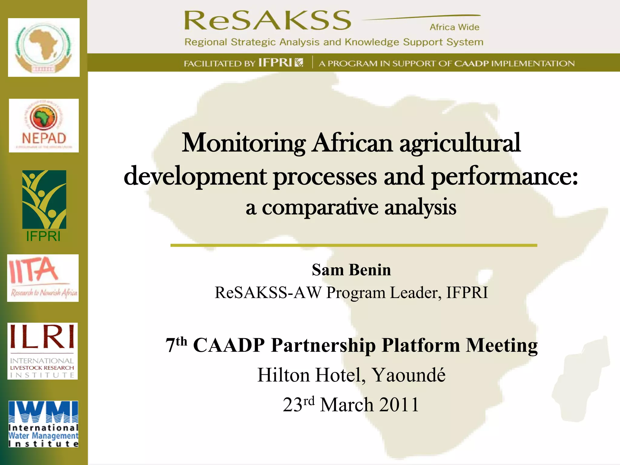 The document presents the 2010 CAADP M&E Continental Report, which analyzes agricultural development processes in Africa using established frameworks. It highlights the need for effective monitoring of agricultural commitments, interventions, and outcomes to improve food security and poverty reduction across the continent. The report also outlines progress made, data sources utilized, and future priorities for enhancing monitoring and evaluation frameworks in various African nations.