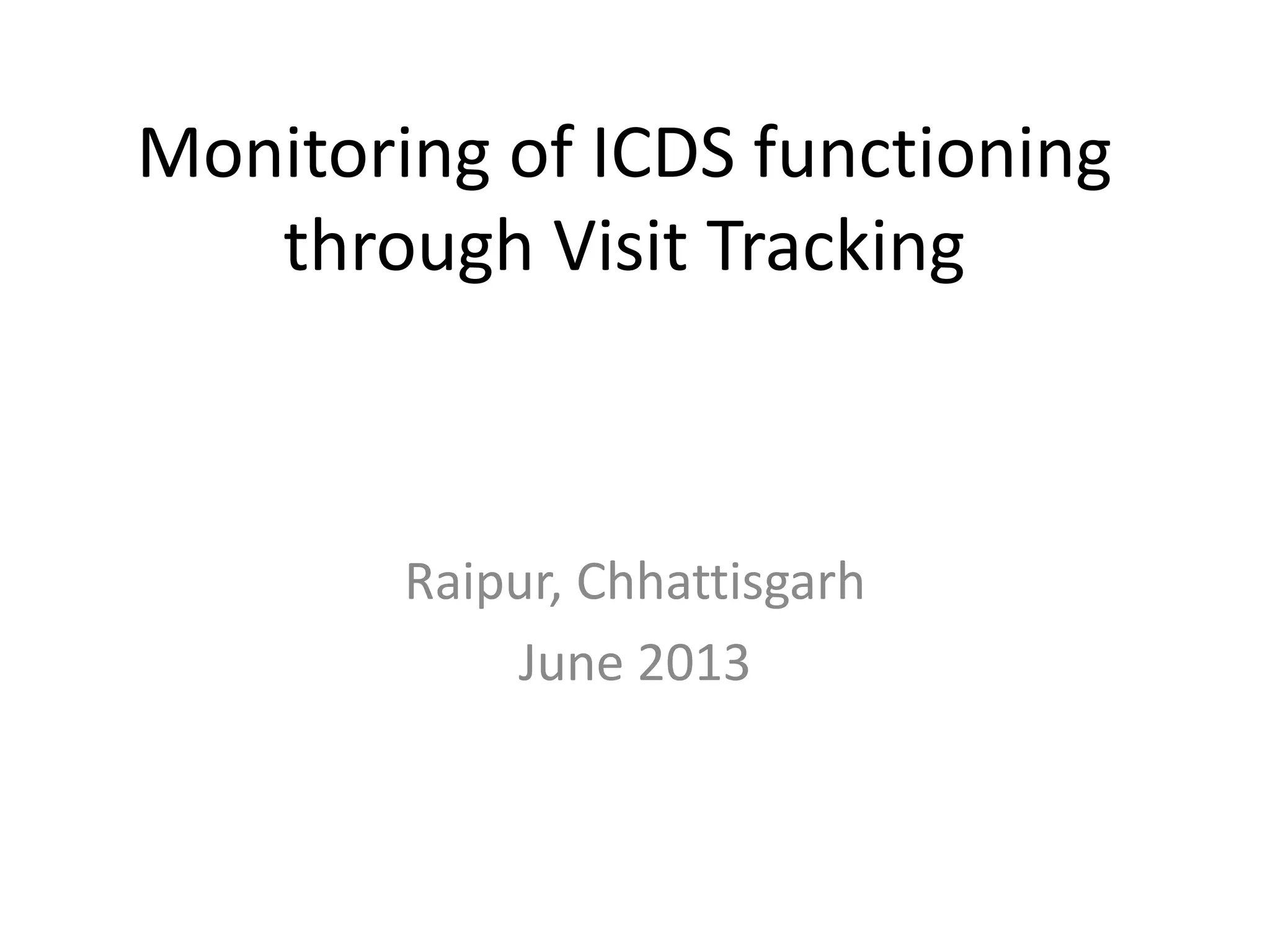The document proposes a mobile-based visit tracking system for India's Integrated Child Development Services (ICDS) program to improve monitoring and supervision. It outlines guidelines for regular visits by ICDS supervisors, Child Development Project Officers, and district program officers. It then presents a model where Anganwadi workers would report visits by SMS, supervisors would track visits using GPS-enabled phones to capture photos as evidence, and all reporting would feed into a centralized web portal allowing different levels of the system to monitor activities and generate reports.