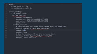 This document discusses using Prometheus to monitor Kubernetes clusters. It provides background on Kubernetes and Prometheus architectures. It then describes challenges with the previous monitoring setup and proposes using the Prometheus operator to more easily monitor Kubernetes and application metrics. The Prometheus operator allows automatically generating target configurations based on Kubernetes labels and provides Custom Resource Definitions for Prometheus and Service Monitors.