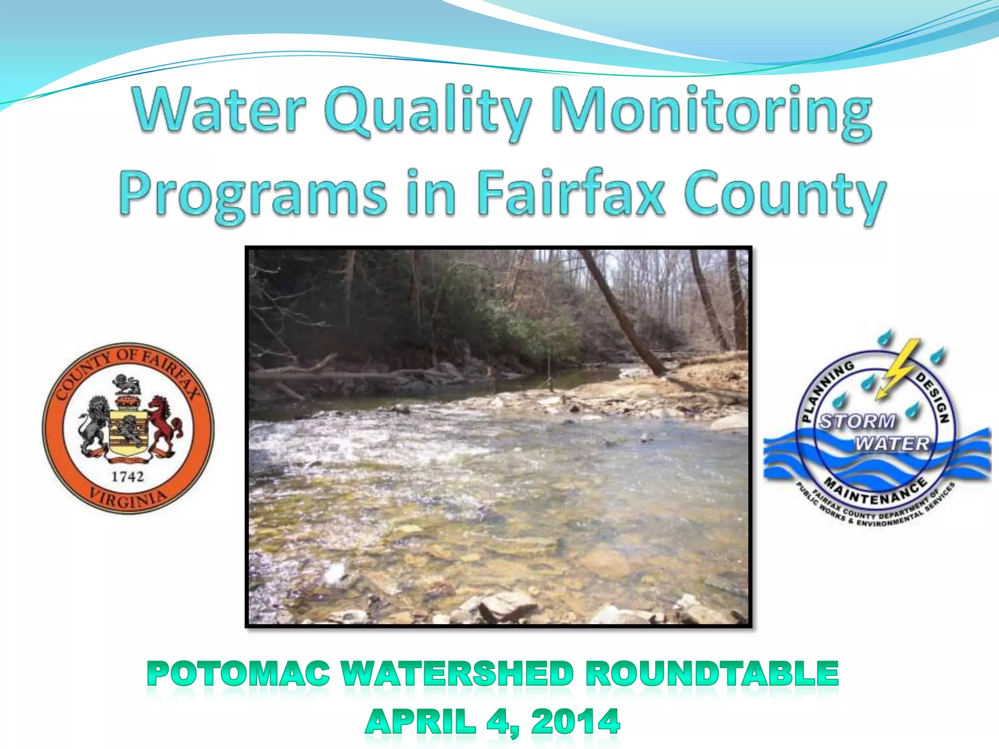 This document summarizes the history of surface water quality monitoring in Fairfax County from 1969 to present. It outlines key milestones and studies conducted over time, including the health department's stream monitoring program in 1969, the ongoing Gunston Cove ecological study partnership since 1984, and the establishment of the Stream Protection Strategy in 1998. It also describes the current state of the county's monitoring program, which includes biological monitoring of streams, dry and wet weather screening of stormwater outfalls, watershed and lake studies, and an ongoing stream gaging study partnership with the USGS since 2007.