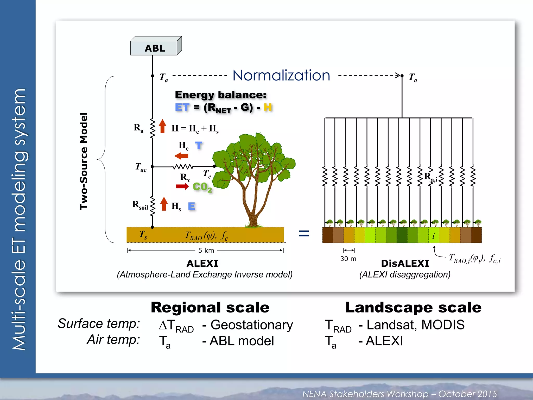 The document discusses monitoring water use and drought from field to global scales, highlighting various methodologies and models used for evapotranspiration (ET) assessment. It demonstrates applications for satellite-derived ET in agricultural water management, drought monitoring, and food security, along with case studies on vineyards and crop yield estimation. The findings were presented during a workshop aimed at engaging stakeholders in the North and East Africa (NENA) region.